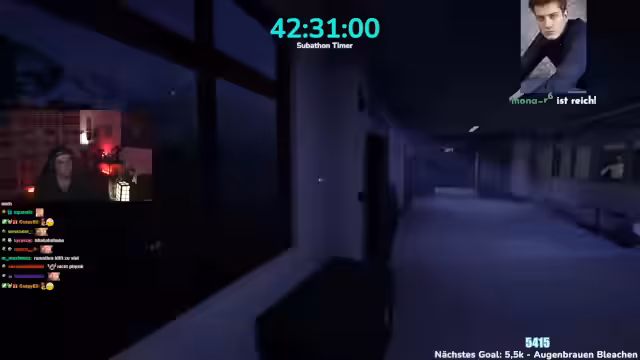 04:20:27Der Streamer startet in einer leeren Gasse in einem neuen Horror-Game, dessen Umgebung an Salzgitter oder Bochum erinnert. Eine gefundene Taschenlampe funktioniert zunächst nicht, was den Hinweis eines Zuschauers auslöst, dass der Strom im Gebäude aus ist. Der Streamer identifiziert sich als YouTuber. Ein Schlüssel wird gefunden, und es wird ein Raum mit Mahjong-Tisch entdeckt, dessen Nutzung 200 Yuan pro Stunde kostet. Die Suche nach dem Stromkasten beginnt, um das Licht anzuschalten, aber dieser ist zunächst nicht auffindbar. Der Streamer erinnert sich an Albträume nach den Sommerferien und den ersten Schultag. Es wird ein Zettel gefunden, der darauf hindeutet, dass der Schlüssel für den Sicherheitskasten sein könnte.