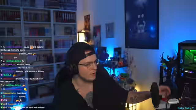09:31:36Nach über neun Stunden Streaming zeigt der Streamer Erschöpfung, aber auch einen bemerkenswerten Willen zur Fortsetzung der Challenge. Er wendet sich persönlichen Geschichten und Themen zu, wie dem Ablauf von Nachtarbeit, seiner eigenen Geburtstagserinnerungen und Anekdoten von Haustieren und Beobachtungen aus dem Alltag. Dieser Abschnitt dient der Auflockerung und zeigt eine persönliche, oft humorvolle Seite des Streamers, die mit den anstrengenden Gameplay-Momenten kontrastiert.