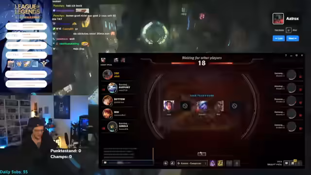 05:02:16Der Stream beginnt mit den ersten Versuchen der Challenge. Der Streamer spielt eine Vielzahl von Champions und erlebt sowohl Erfolge als auch Rückschläge. Ein wiederkehrendes Thema ist die Frustration über das Gameplay und die eigene Leistung. Er kritisiert die Spielweise, die das gesamte Team betrifft, und äußert sich besonders verärgert über Gegner, die seiner Meinung nach taktische Fehler machen, wie ein zurückgehender Nocturne. Der Chat ist in den ersten Runden aktiv und gibt Tipps, was der Streamer manchmal als hilfreich, manchmal als störend empfindet. Die Challenge scheint bereits mit einigen Problemen zu starten, etwa unklaren Regeln bei Early-Surrenders in Unranked-Spielen.