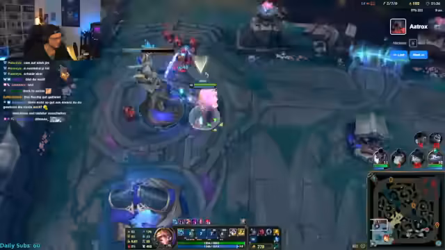 06:08:21Nach einigen holprigen Runden gelingt es dem Streamer, seinen zweiten Champion, Ari, in einem Ranked-Spiel erfolgreich abzuschließen. Der Sieg wird trotz einer durchwachsenen persönlichen Leistung (0-7 K/D) gefeiert, da das Team als Ganzes gewinnt und die Challenge vorankommt. Dieser Erfolg scheint den Streamer zu motivieren. Er wechselt den Fokus von reiner Unterhaltung zu einem ernsteren Gameplay-Ansatz. Er versucht, sich auf seine Farm zu konzentrieren und ignoriert mehr die Ablenkungen durch den Chat. Auch die Kommunikation im Team wird wichtiger, da er versucht, die Botlane zu unterstützen und den Fokus des Teams auf sich zu lenken, um das Spiel für sich zu entscheiden.