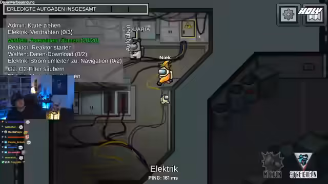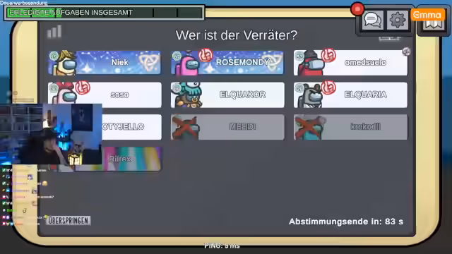02:18:40Ein kürzlicher Kill führt zu einer intensiven Diskussion unter den Spielern. Medi wird verdächtigt, da er in der Nähe des Tatorts war. Es wird versucht, die Bewegungen der Spieler nachzuvollziehen, um den Täter zu identifizieren. Spieler wie Quaria, Eli und Quaco werden in die Diskussion einbezogen, wobei widersprüchliche Aussagen und Beobachtungen die Situation verkomplizieren. Die Rolle des 'Scientist' wird erwähnt, da dieser Spieler die Möglichkeit hat, Kills zu verfolgen und somit Alibis zu bestätigen oder zu widerlegen. Die Verwirrung und die gegenseitigen Beschuldigungen zeigen die Spannung und die Schwierigkeit, den Imposter in dieser Runde zu finden.