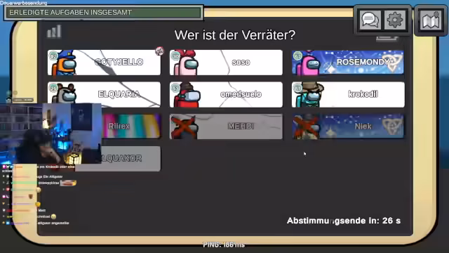 00:43:38Der Fokus verlagert sich komplett auf das Spiel Among Us. Der Streamer und seine Mitspieler durchleben eine Reihe chaotischer Runden, die von Verdächtigungen, strategischen Calls und einem turbulenten Chat geprägt sind. Es kommt zu häufigen Votings, in denen Spieler wie Omet, Krokodil und Aquaria verdächtigt werden. Die Kommunikation ist schnelllebig und oft von Scherzen und persönlichen Auseinanderschnitten geprägt.