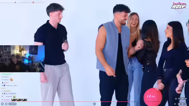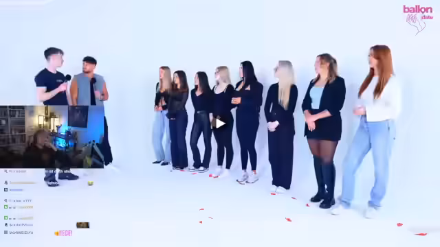 01:13:05Der eigentliche Stream, eine neue Folge des Formats 'Pop the Balloon', wird gestartet. Momo begrüßt die Zuschauer und nennt als Ziel das Erreichen von 100.000 Abonnenten im Jahr. Das Prinzip des Formats wird erklärt: Acht attraktive Single-Männer treten einzeln vor die Teilnehmerinnen. Jeder Mann hat die Möglichkeit, sich vorzustellen, bevor die Frauen für ihn oder gegen ihn stimmen, indem sie einen Ballon platzen lassen. Der erste Teilnehmer, Benni (20), stellt sich als Feuerwehrmann aus Köln vor und gibt an, dass ihm ein Gespräch auf Augenhöhe mit einer Frau wichtig ist.