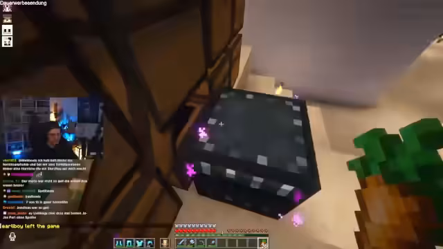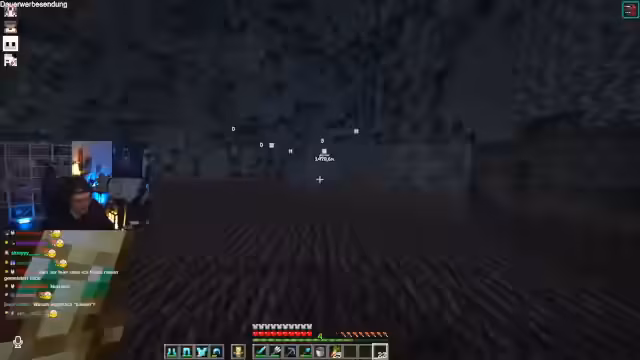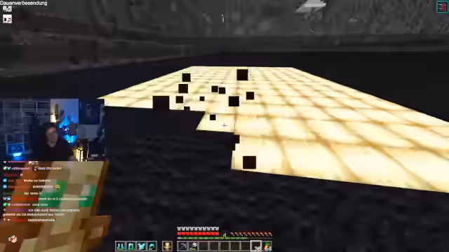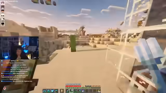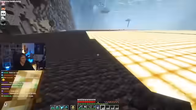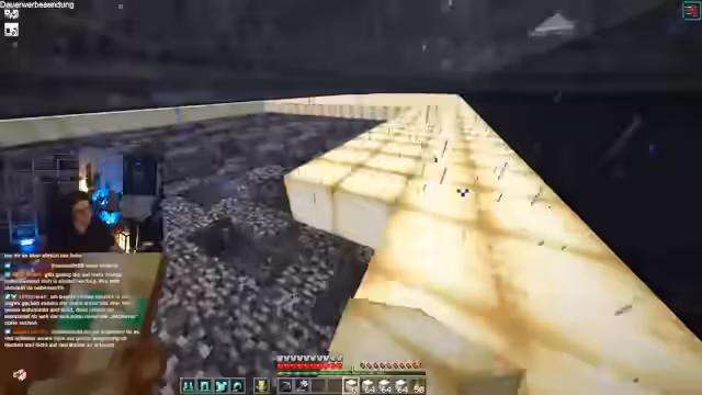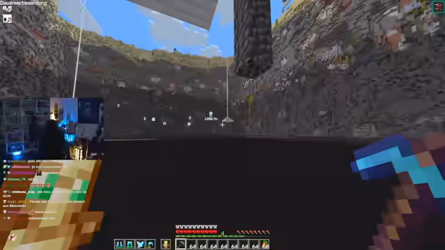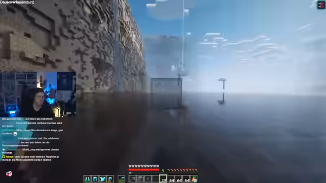 00:10:18Beim Streamen aus dem Badezimmer werden technische Probleme erwähnt. Der Fokus verlagert sich auf ein großes Minecraft-Projekt: den Bau eines Loches. Der Streamer koordiniert mit anderen Spielern, insbesondere bei der Logistik und der Verteilung von Blöcken wie Froglight, Glas und Teppich. Es entstehen Diskussionen über die effizienteste Methode, um die Blöcke über einen Wasserfall zu transportieren und zu platzieren, um Verluste zu vermeiden und die Bauzeit zu optimieren.
