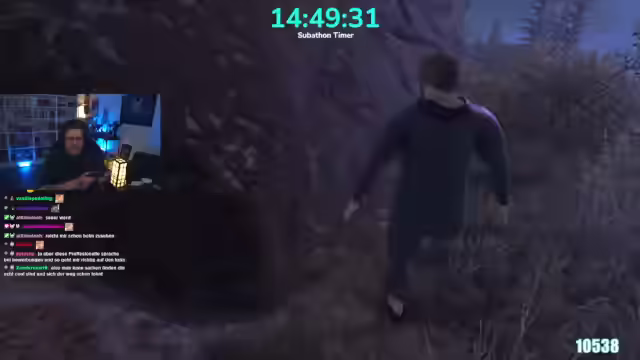 04:45:32Es wird festgestellt, dass der Weg die ganze Zeit übersehen wurde. Es wird sich über den Charakter im Spiel lustig gemacht. Es wird ein Tutorial geschafft. Es werden absurde Aktionen im Spiel kommentiert und sich selbst ermahnt, vorsichtig zu sein. Es wird ein schwieriger Sprung geschafft und sich selbst gelobt. Es wird sich über die Krone lustig gemacht und der Charakter als dumm bezeichnet. Es wird ein steiniger Weg im Spiel kommentiert und Xavier Naidoo Cosplay erwähnt. Es wird ein Spagat des Charakters bestaunt. Es wird die Kerze im Spiel erreicht. Es wird ein Burger erwähnt, der kalt wird. Es wird ein Flashback des Charakters gezeigt. Es wird ein japanisches Tor im Wald entdeckt und der Weg als chillig beschrieben. Es wird ein Bär entdeckt, der den Weg versperrt und überlegt, wie man vorbeikommt. Es wird sich an ein Pokémon-Spiel erinnert. Es wird ein schleimiger Weg entdeckt und sich selbst Mut zugesprochen. Es wird ein neuer Weg entdeckt und sich darüber gefreut. Es wird ein komisches Häuschen entdeckt und versucht, hochzuklettern, um einen Helm zu finden. Es wird der Schwierigkeitsgrad des Parcours beklagt und überlegt, ob sich die Mühe lohnt.