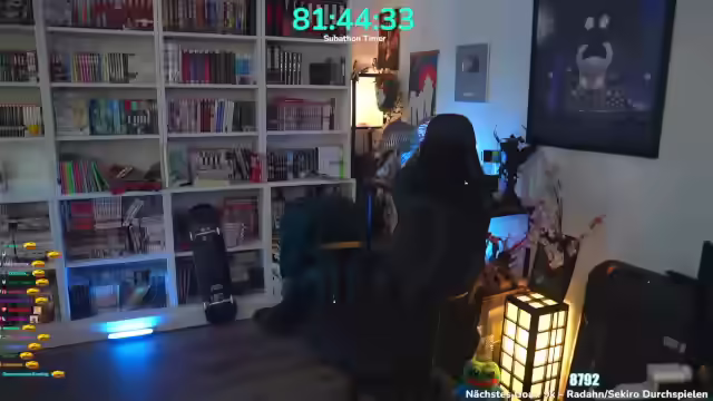 08:46:50Es kommt zu Wutausbrüchen gegenüber einem Gegner im Spiel, der als "Fickstückscheiße" und "Hurensohn" beschimpft wird. Es wird sich über Werbung auf YouTube lustig gemacht und dem Support gedankt. Es wird überlegt, nach Silksong Sekiro zu spielen, obwohl das Spiel schon fünf Jahre her ist und es als schlimm empfunden wird, das gesamte Spiel noch einmal durchspielen zu müssen. Es wird sich über Aimbot-ähnliche Fähigkeiten eines Gegners beschwert und über fehlende Shortcuts im Spiel geärgert. Es wird erzählt, dass jemand auf die Story des Streamers auf Instagram reagiert hat und die App gelöscht wird. Es wird nach dem orangenen Kater-Namen gefragt und ein Stofftier gelobt. Es wird sich über einen Satz der Oma lustig gemacht, die angeblich halbe Keller in ihrem BH packt. Die Session ist geprägt von einer Mischung aus Wutausbrüchen, der Planung von YouTube-Content und dem Umgang mit persönlichen Problemen.