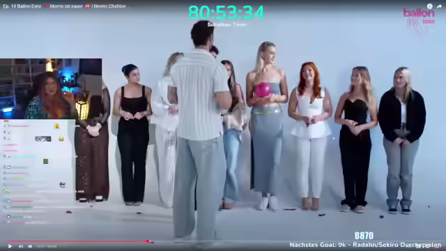 04:01:09Es wird die Idee diskutiert, eine Reaktion für YouTube aufzunehmen, um die Zuschauer dort zu verwirren, da diese den Twitch-Stream nicht kennen. Als nächstes wird überlegt, welche Videos eine Baddie auf YouTube schauen würde, wobei die Wahl auf "Hilf mir!" oder Dating-Formate fällt, in denen Männer kommentiert werden. Es wird ein Thumbnail aufgenommen und nach dem Namen eines passenden Formats gesucht. Anschließend wird eine Single-Show mit acht attraktiven Frauen gestartet, in der ein Single-Mann vorgestellt wird, der von den Frauen nach bestimmten Kriterien bewertet wird. Die Frauen lassen Ballons platzen, wenn ihnen der Mann nicht gefällt. Es werden verschiedene Gründe für das Platzenlassen der Ballons genannt, wie z.B. Aussehen, Tattoos, Alter oder Outfit.