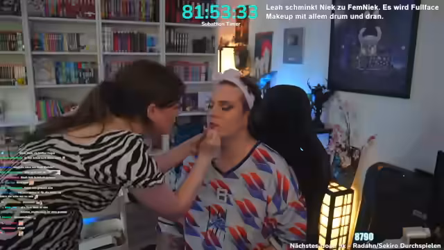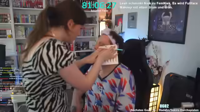 00:50:59Der Prozess des Schminkens als FemNiek begann mit dem Augen-Makeup. Der Streamer berichtete von einem ungewöhnlichen Vorfall: als Baby gegen einen Ventilator gefallen zu sein, was zu einer bleibenden Narbe über der Augenbraue führte. Dies war der Grund für eine Microblading-Behandlung der Augenbrauen. Während des Schminkens wurden auch persönliche Geschichten aus der gemeinsamen YouTube-Zeit mit Lia und anderen Enthüllungen aus damaligen Beicht-Videos geschildert, die teils sehr verstörend waren.