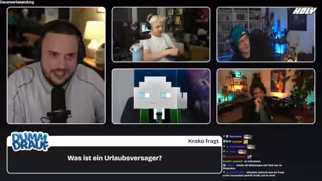 02:56:57Nach der Auflösung des „Rentnerbraten“-Rätsels wird ein neues Wortspiel eingeführt: „Urlaubsversager“. Die Community darf zwischen „Dackelmesser“, „Urlaubsversager“ und „beleidigte Leberwurst spielen“ wählen, wobei die Mehrheit sich für den „Urlaubsversager“ entscheidet. Es folgen zahlreiche Spekulationen über die Bedeutung des Begriffs. Zunächst wird die Idee eines Singles, der erfolglos aus dem Urlaub zurückkehrt, in den Raum gestellt, aber verworfen. Eine andere Vermutung ist, dass der Körper im Urlaub krank wird, da er sich endlich entspannen kann – eine als „sehr spannende Erklärung“ bezeichnete, aber ebenfalls falsche Annahme. Auch Lebensmittelvergiftungen im Ausland, ein „Loser“ oder ein inkompetenter Reisebüromitarbeiter werden als mögliche Bedeutungen vorgeschlagen, jedoch alle verneint. Der entscheidende Hinweis lautet, dass ein Urlaubsversager „gar nicht in ein Reisebüro gehen und ihren Urlaub buchen“ könnte, was zu weiteren Überlegungen führt, ob es sich um Kinder, finanziell benachteiligte Personen oder Menschen ohne Urlaubsgenehmigung handelt. Es wird jedoch klargestellt, dass der Urlaub tatsächlich genommen wird.