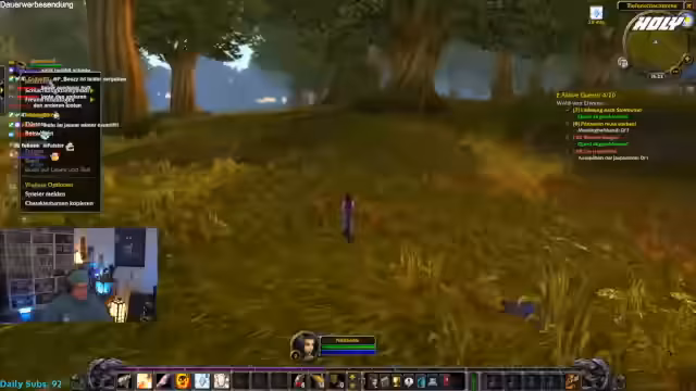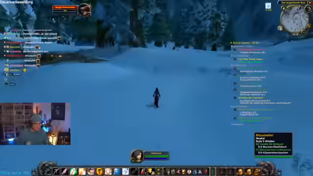 09:54:25Der Streamer befindet sich mit seinem Charakter im Elbenwald und tauscht sich mit anderen Spielern über den Standort und das Vorgehen aus. Es werden Pläne für ein gemeinsames Vorgehen besprochen, inklusive der Herausgabe eines Zauberstabs. Der Chat informiert über das Fehlen des Streamers in der Gilde, was als cooles Event für das Hardcore-Spielen angesehen wird. Interaktionen mit anderen Spielern wie 'Paul' und 'Vadim' werden thematisiert, um Koordination und Hilfe zu leisten.