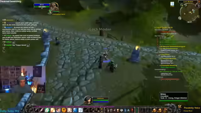 09:04:14Während des Streams treten mehrere technische und organisatorische Herausforderungen zutage. Streamer Niekbeats bemerkt, dass sein Display nicht mehr anzeigt, welche Charaktere in der Gilde sterben, was auf ein Problem mit seinem neuen Charakter oder der Discord-Verbindung zurückzuführen ist. Gleichzeitig werden die Tode mehrerer bekannter Streamer wie Kutscha und Power of Evil in Loch Modan gemeldet, was für Aufsehen sorgt. Das Highlight des Streams ist ein seltener Mob (Murloc mit Frost Nova), der zwei Spieler tötet und für Diskussionen sorgt. Das Gameplay konzentriert sich auf das Sammeln von Ressourcen und das Erledigen von Quests in der Nähe von Goldhain und Loch Modan.