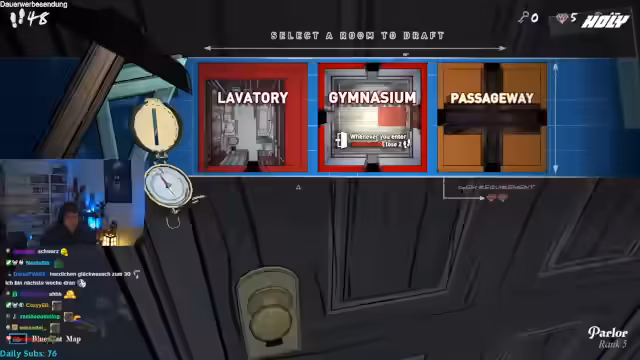 03:00:45Nachdem der Versuch, den geheimen Garten zu betreten, gescheitert ist, wendet sich der Streamer einem anderen Rätsel zu. Er entdeckt eine Mechanik, bei der man ein 'Angebot' machen kann, um einen Segen zu erhalten. Dieser Segen fügt heute 8 zusätzliche Klassenzimmer zur Auswahl hinzu. Der Streamer diskutiert mit seiner Community über den Nutzen dieser Aktion und wie sich die neuen Räume auf den Draft Pool auswirken könnten, was auf strategisches Denken schließen lässt.