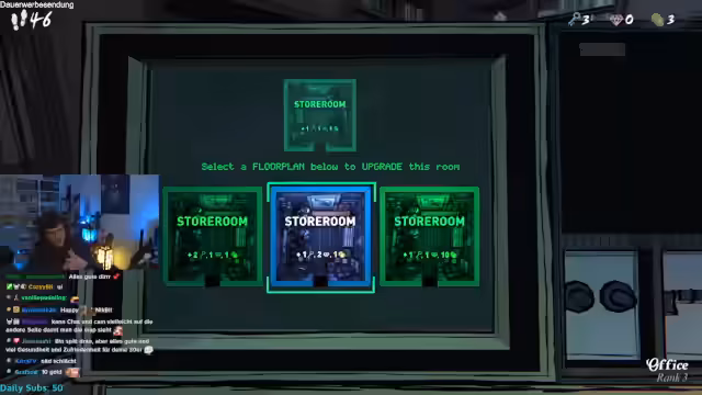 01:49:27Der Stream spielt das Roguelike Puzzle Game 'Basement Slaughterhouse'. Er wählt einen Corridor und einen Garden und erhält später durch eine Upgrade-Die Wahl die Möglichkeit, einen Storeroom mit Gems oder Münzen zu verbessern. Er entscheidet sich für die Gems, was strategisch klug ist, da Gems die Hauptwährung des Spiels darstellen, während er Münzen hauptsächlich für den Kauf von Schritten und Nahrung benötigt.