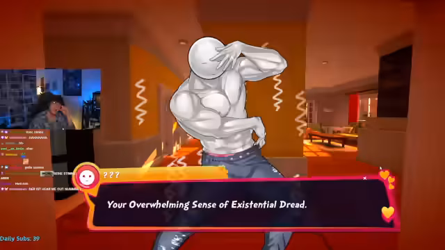 02:59:34Ein zentrales Thema des Streams ist die Interaktion mit einem Charakter namens 'Dork', der einen 'Enemy-to-Lovers'-Plot repräsentiert. Der Streamer und der Charakter führen einen zynischen und witzigen Dialog über gesellschaftliche Themen, Existentialismus und soziale Medien, während der Charakter als toxisch und gleichzeitig attraktiv beschrieben wird. Die Beziehung entwickelt sich durch diese Interaktion langsam weiter.