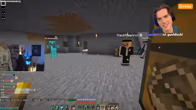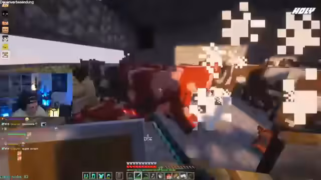 02:49:09Während einer intensiven Schlacht verzeichnet das Team schwere Verluste und steht unter massivem Druck. Nachdem mehrere Teammitglieder eliminiert wurden, entwickeln sie Rachepläne mit TNT-Sprengungen gegen die gegnerische Basis von Matze. Die Stimmung ist frustriert, aber voller Entschlossenheit: Sie planen, die feindlichen Strukturen bei nächster Gelegenheit zu zerstören und die Niederlage wettzumachen. Dabei wird deutlich, dass die Konflikte mit Gruppen wie Trimax und den Türken eskalieren.