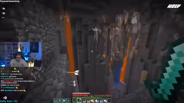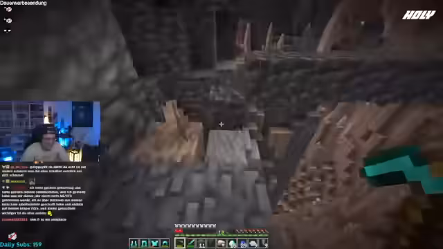 01:10:37Niek diskutiert Herausforderungen in Trial Chambers: Niko starb durch Stalagniten an einer Wendeltreppe, und ein Teammitglied wurde hochgesprengt. Er plant einen Alleingang, um nach Tridents und Kolben zu suchen – Ressourcen, die für Nether-Vorbereitungen gebraucht werden. Die Erfolgswahrscheinlichkeit schätzt er bei 1-7% ein und bemerkt fehlende Ausrüstung (Bogen, Schild). Er erwähnt, dass Trident-Hauptquelle das Ertrinken ist, nicht die Trials. Trotzdem will er weitergrinden, da das Projekt anders als Craft-Attack ist und endlich PvP und Bauarbeiten ermöglicht. Er dankt Basti für Support.