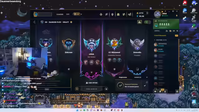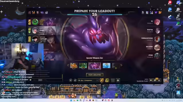 00:14:46Nach einer kurzen Unterbrechung wird der Tagesplan vorgestellt. Statt der erwarteten Spiele Omori oder Silksong wird Skyward Sword weitergespielt. Davor steht eine ausgedehnte Reaction im Programm. Als wichtiges Event wird ein 5-Stack im League of Legends um 21 Uhr angekündigt, an dem Ginderella, Power of Evil, Nicoletta und Fake Robin teilnehmen werden. Der Streamer äußert den Wunsch, seine Main-Rolle Jungle zu spielen, da er in letzter Zeit oft unfreiwillig als Support eingesetzt wurde.