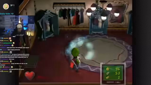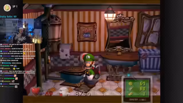 01:23:30Das Hauptziel, Mario in der riesigen Villa zu finden, wird vorgestellt. Der Streamer erkundet Räume, klopft an Gegenständen und sucht nach Hinweisen. Dabei entdeckt er eine Geisterfamilie (Vater und Mutter), die sich versteckt halten, und fängt sie mit dem Staubsauger ein. Die Mechanik des Jagens und Versteckens wird als anspruchsvoll beschrieben.
