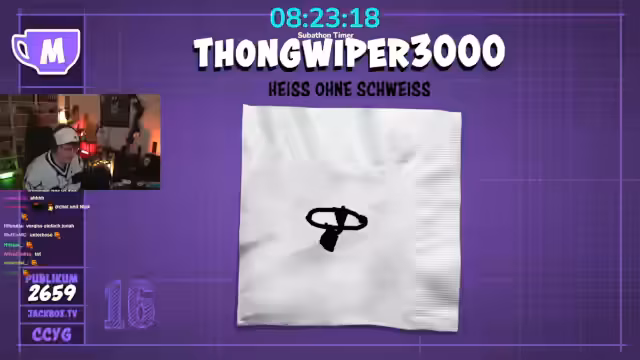 03:40:00Ein neues Problem, 'meine Arschbacken werden ständig nass', führt zu einer intensiven Erfindungsrunde. Teilnehmer entwickeln Produkte wie den 'Brazilian Butt Cut' (chirurgische Reduktion), 'Poseidons Albtraum' (einfach ein T-Shirt als Handtuch nutzen) oder den 'Stöpfelgebläse' (ein trocknender Anal-Plug). Die Zeit drängt, Diskussionen über Machbarkeit und Humor laufen, während der Streamer die Abstimmung der Zuschauer einleitet und das Gaming-Event mit weiteren Spielrunden und Chat-Interaktion abschließt.