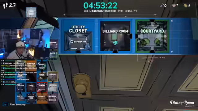 05:41:40Der Streamer startet seinen ersten Spiel-Run in Blueprints. Er zeigt die Startposition und muss Entscheidungen treffen: Räume wie Bedroom, Closet oder Hallway auswählen, die jeweils Vor- und Nachteile bieten. Er priorisiert Räume, die mehr Schritte geben oder Items liefern, während er versucht, nach oben zum Ziel vorzudringen. Er sammelt Items wie einen Schaufel und Hammer, die für spezielle Aktionen wie Graben oder Zerstören von Hindernissen nützlich sind. Seine Strategie ist flexibel: Er reagiert auf die verfügbaren Räume und versucht, Türen zu öffnen oder Boni zu nutzen.