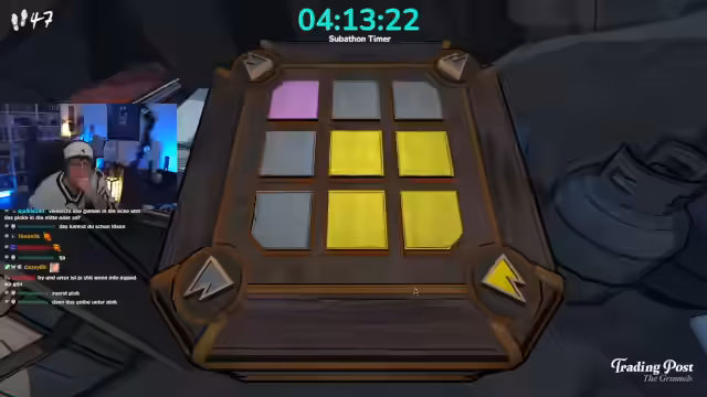 05:58:20Der Streamer trifft auf ein Rätsel in einem Parlor-Raum, bei dem drei Truhen eine Aussage machen: eine sagt die Wahrheit, eine lügt, und eine kann beides sein. Er muss anhand der Aussagen entscheiden, in welcher Truhe ein Schatz liegt. Nach Analyse löst er das Rätsel und gewinnt zwei Juwelen. Trotz des Erfolgs erreicht er nicht das Ziel und beendet den Tag mit 23 von 46 besuchten Räumen. Er fasst zusammen: 5 Items gefunden, Rang 5 erreicht, und identifiziert, dass der Archive-Raum eine Fehlentscheidung war, da er zu wenige Optionen bot.