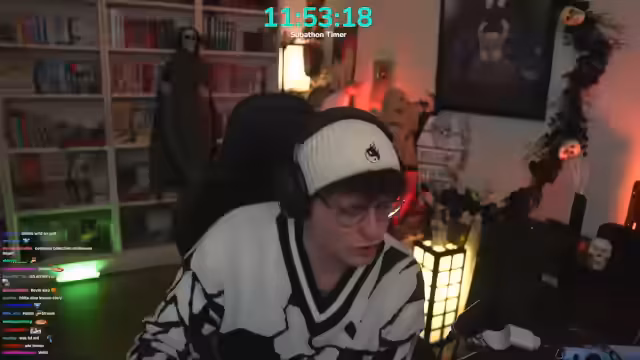 00:08:59Der Streamer begrüßt das Publikum nach einer technischen Störung mit dem Mikrofon und erklärt die neue Halloween-Dekoration. Es wird angekündigt, dass mehr Dekoration folgen wird, da sich der Autofokus ständig auf die Hintergrunddekoration einstellt. Wichtig ist die Ankündigung für den SPOOKTOBER-Monat mit neuen Emotes und Stream-Zielen, wobei gemeinsame Aktivitäten wie Kürbisschnitzen, Kürbissuppe-Kochen und Black Stories geplant sind.