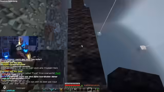 06:39:20Es wird über die Auto-Connect-Mod diskutiert, die es ermöglichen würde, über Nacht an Farmen zu bleiben und Materialien zu sammeln, ohne vom Server gekickt zu werden. Die Erlaubnis für diese Mod wird geprüft und als positiv befunden. Die Spieler betonen die Notwendigkeit, riesige Mengen an Materialien wie Froglights und Glas zu beschaffen. Es wird die Idee geäußert, dass sich jemand bereit erklärt, AFK an einer Farm zu stehen, um die Materialbeschaffung zu unterstützen. Der Streamer äußert seinen "Gamer-Stolz" und bevorzugt es, die Materialien selbst zu farmen, auch wenn dies mühsam ist. Trotzdem wird die Hilfe von anderen Spielern, die freiwillig Materialien bereitstellen, als positiv und ehrenhaft angesehen, solange der Kern des Projekts eigenständig bleibt.