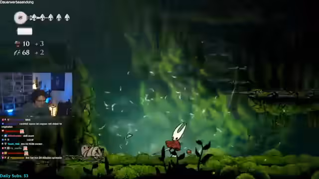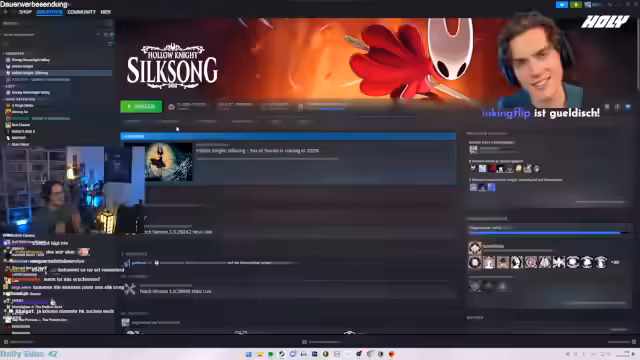 00:38:12Der Streamer erklärt, dass er das Silksong-DLC erst spielen wird, nachdem er alle verbliebenen Achievements im Basisspiel erreicht hat. Er plant, Steel Soul Mode (Permadeath) zu meistern und motiviert sich für einen neuen Durchlauf. Parallel dazu diskutiert er kurz Patch-Notizen für das Originalspiel und äußert sich über die Schwierigkeit, nach Silksong wieder zum etwas 'klunkigeren' Movement von Hollow Knight zurückzukehren. Die Community unterstützt ihn mit Spenden und Subs, während er weitere geplante Spielinhalte für den Stream anspricht.