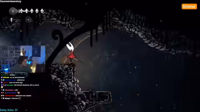01:15:31Der Steel-Soul-Run (permanenter Tod) in Silksong wird fortgesetzt bis zu einer gefühlten Panikphase oder Controllerverlust. Diskussion über die Herausforderung des Boss-Fights mit fast tödlichem Treffer. Community-Wünsche für ein Multiplayer-Event mit permanentem Tod werden geäußert, wo alle Spieler gleichzeitig starten und der letzte Überlebende gewinnt. Speedrun-Ideen für die Community werden als zukünftiges Event konzipiert.