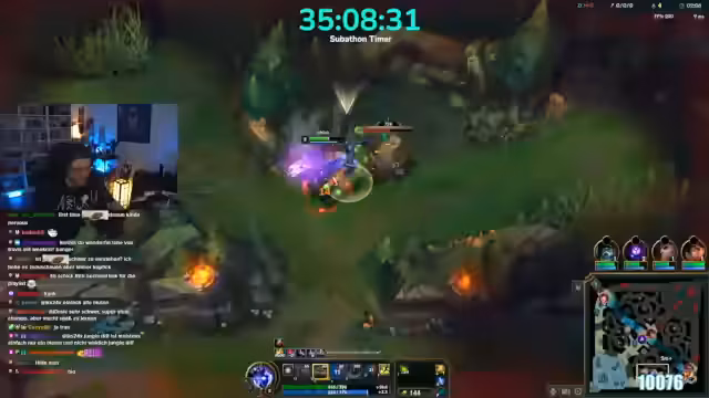07:29:00Es läuft ein League of Legends-Spiel, bei dem der Streamer als Jungle spielt. Er erläutert seine Spielweise, die hauptsächlich aus constantem Laufen, Farmen, Versuchen von Ganks und Nerven des Gegnerteams besteht. Die Partie verläuft jedoch extrem frustrierend, da sein Team, insbesondere der Swain, offenbar kein grundlegendes Verständnis des Spiels zeigt, koordiniert agiert und Fehltritte begeht, die zum Scheitern führen.