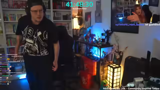 00:48:23Nach dem Höhepunkt des Death Note Segments macht der Streamer eine überraschende Enthüllung: Das ganze Death Note sei ein Scherz und ein Tagebuch gewesen, um die Community zu täuschen. Er gibt an, niemandem hätte etwas zustoßen können. Der Stream endet diese Phase abrupt mit der Ankündigung, das Sub-Ziel von 10.000 erreichen zu wollen. Der Inhalt wechselt sofort zu einem Silksong Speedrun, bei dem der Streamer unter 5 Stunden durchspielen möchte.