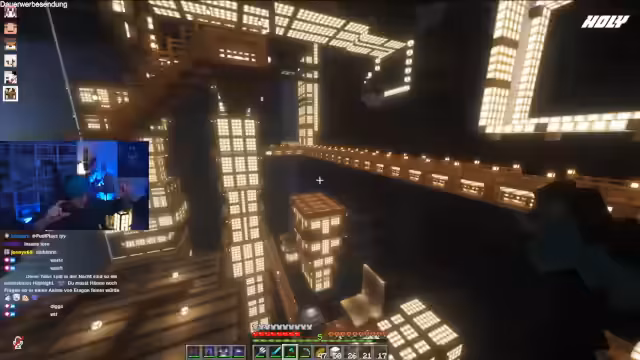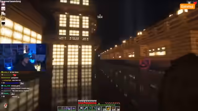 05:20:42Der Baufortschritt von Hannos Haus wird kommentiert, wobei festgestellt wird, dass wenig passiert ist. Willi wird für den Bau eines Hauses gelobt, und die Wandhäuser, die halb herausgucken, werden als ästhetisch ansprechend beschrieben, da sie die Szenerie endloser wirken lassen. Es wird die Zufriedenheit über den schnellen Fortschritt des Projekts ausgedrückt, da es in zwei Wochen statt der erwarteten zwei Monate fertiggestellt werden könnte. Die Idee eines Netherite Beacons als einzigartiges Element auf dem Server wird diskutiert. Für den nächsten Tag ist das End-Event geplant, bei dem Elytren gesucht werden. Es wird betont, dass Keep Inventory aktiviert ist, was den Verlust von Gegenständen verhindert, aber trotzdem eine gefährliche und potenziell frustrierende Erfahrung erwartet wird. Der Streamer plant, um 18 Uhr da zu sein, um sich vorzubereiten, um 19:30 Uhr ein Konzert zu besuchen und um 20 Uhr das End zu betreten. Die Froglight Farm wird als kaputt und die Umgebung als „Silent Hill“ beschrieben. Der Stream endet mit einem Raid zu Sydney.