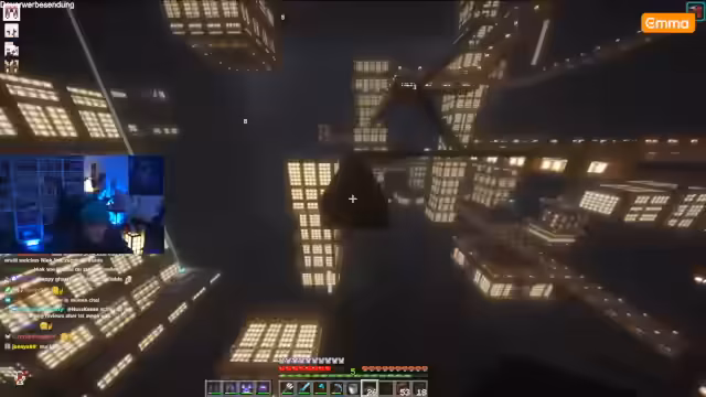 00:54:00Es werden weitere architektonische Ideen für die Gebäude diskutiert. Nik schlägt vor, mehr Treppen zu bauen, die schräg nach oben gehen, da die aktuellen Brücken zu geradlinig seien und den Eindruck erwecken, dass es nicht weitergeht. Sidney wird ermutigt, ein „Glitchhaus“ aus der Wand zu bauen, das zuvor auf dem Boden gesehen wurde, und es rechts neben Repatz' Haus zu platzieren, um die Breite und Wandfläche optimal zu nutzen. Es wird auch die Idee besprochen, eine Brücke so zu bauen, dass sie zwischen den Gebäuden verläuft und von dort aus eine Treppe in ein Gebäude führt, was als „cool“ und „geil“ empfunden wird. Der Streamer beklagt sich humorvoll über die Behandlung durch ein Teammitglied, das ihn nach dem Verlust seiner Sachen nicht unterstützte, sondern nur „arbeiten“ in den Chat schrieb. Es wird auch über die Planung von Gebäuden mittels „Lichtstangen“ gesprochen, die als grobe Bauskizzen dienen sollen, um die Richtung und den Platz für zukünftige Gebäude zu visualisieren.