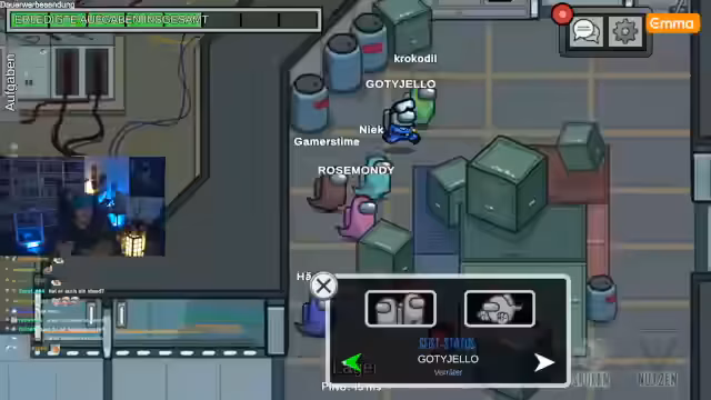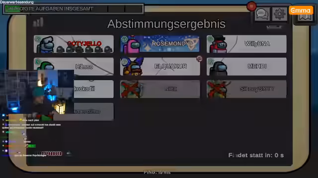 01:50:11Die Among Us-Runde wird chaotisch, als ein Spieler namens Henno verdächtigt wird, der Imposter zu sein. Es wird argumentiert, dass er zu selten O2 oder Lichter aktiviert und dumm eingesperrt. Henno verteidigt sich, indem er sagt, dass er in den letzten beiden Runden unschuldig war. Es kommt zu weiteren Anschuldigungen und Abstimmungen, die oft auf Vermutungen und Gefühlen basieren. Ein Spieler schlägt vor, einen „Freischuss“ zu nehmen und Rosemondi zu wählen, da sie sich verdächtig verhalten hat. Die Diskussionen werden hitzig, und es wird über die Größe des Streamers gescherzt. Die Runde endet mit einer weiteren Abstimmung, die jedoch nicht sofort zum Erfolg führt, da die Spieler weiterhin verwirrt sind und sich gegenseitig verdächtigen.