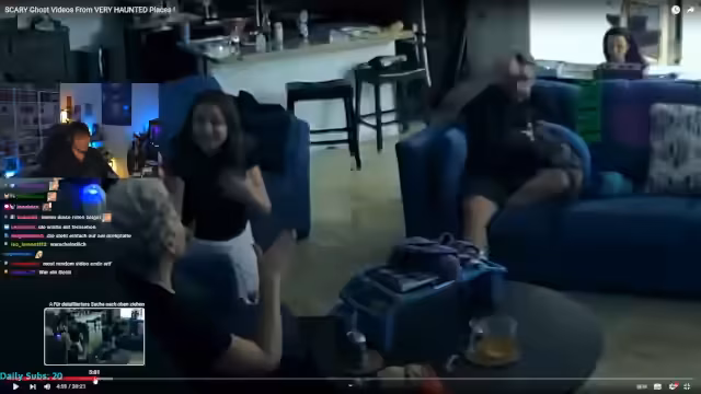 00:35:34Nachdem die Spiele installiert sind, wechselt der Streamer das Format und präsentiert dem Chat Gruselgeschichten und Videos von angeblich paranormalen Vorfällen. Er analysiert unter anderem ein Video, in dem eine Familie von Geistererscheinungen berichtet, und ein weiteres mit einem Geist am Küchenfenster. Der Streamer hinterfragt die Echtheit der Clips, insbesondere der mit der häkelnden Familie, und findet viele der inszenierten Details und Ungereimtheiten absurd und gestellt.