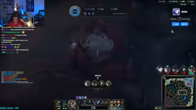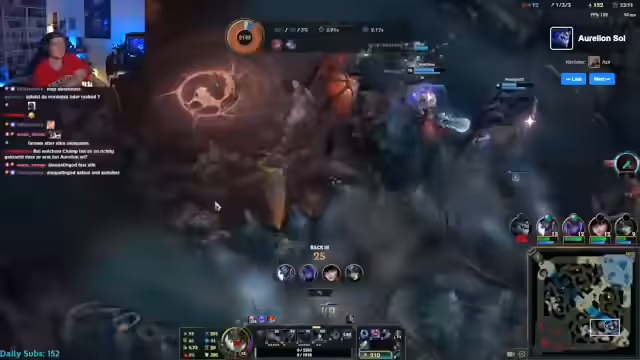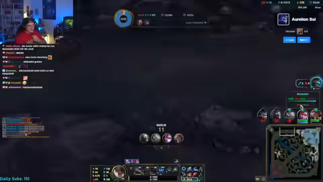 07:30:44Mit dem Beginn der Runde als Aurelion Sol startet eine neue Lernphase. Der Streamer findet das ungewohnte, stehende Gameplay des Champions schwierig und den kurzen Range seiner Fähigkeiten unfair. Es kommt zu technischen Problemen und einem Verbindungsabbruch, was ihn zusätzlich ärgert. Die Runde endet in einer klaren Niederlage, die seine Frustration über die Komplexität des neuen Champions und die aktuelle Matchup-Situation widerspiegelt.