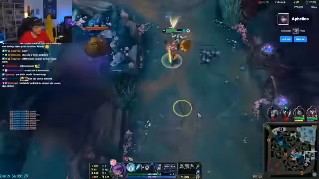 04:02:24Der Streamer beginnt den Tag 3 der A-Z Challenge mit dem Champion Aphelios, nachdem er diesen trotz anfänglicher Bedenken als sehr stark empfunden hat. Während des Spiels erwähnt er seinen League of Legends Account mit 400 skins, den er eventuell verkaufen will. Die Anfangsrunden gestalten sich schwierig und der Streamer kämpft mit mangelnder Farm und Spielsense, was zu Frustration und self-deprecatingen Kommentaren im Chat führt. Er leidet unter der hohen Herausforderung, Aphelios in ranked Spielen zu meistern.