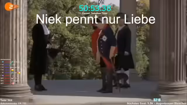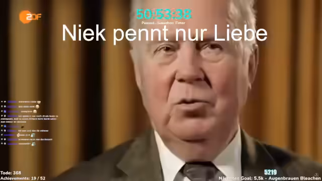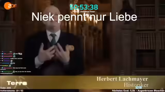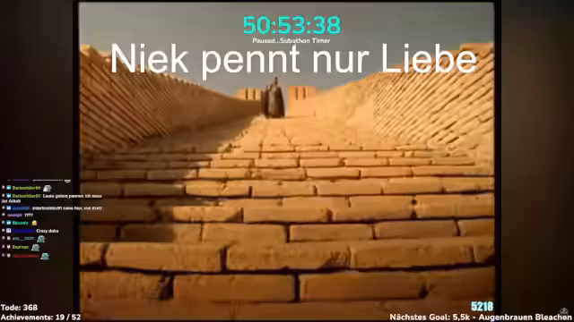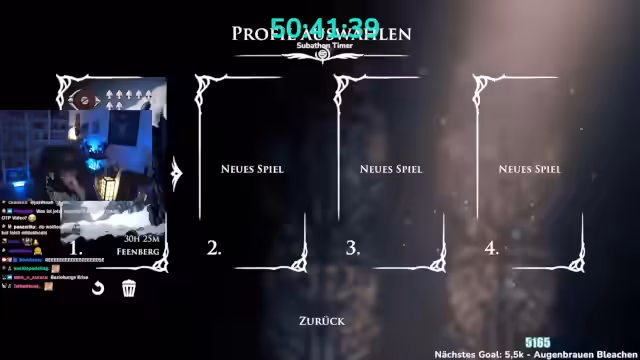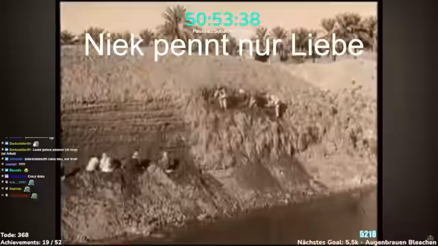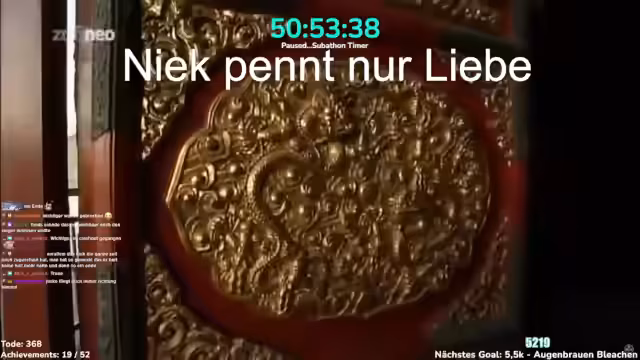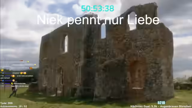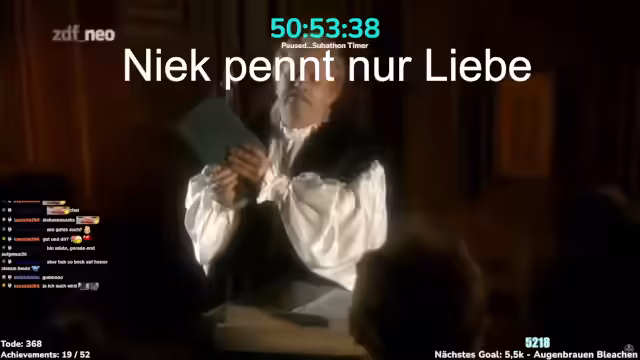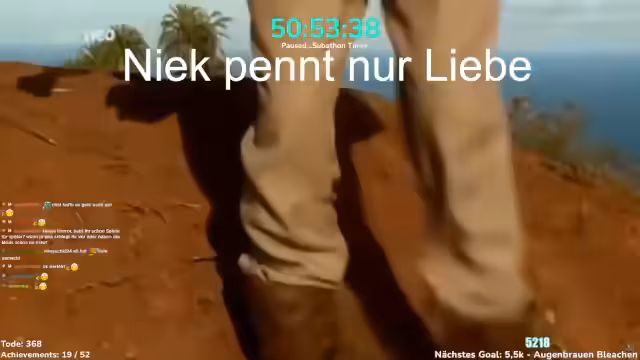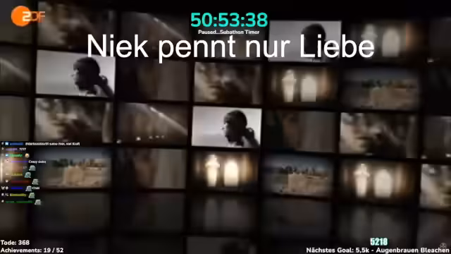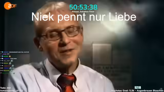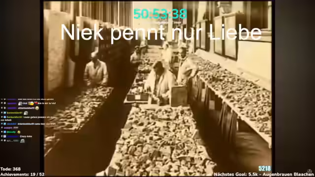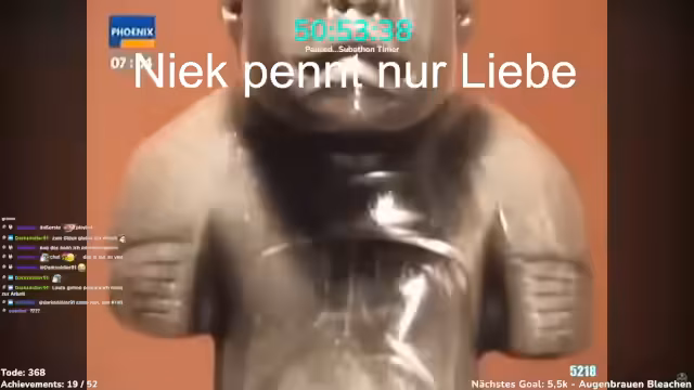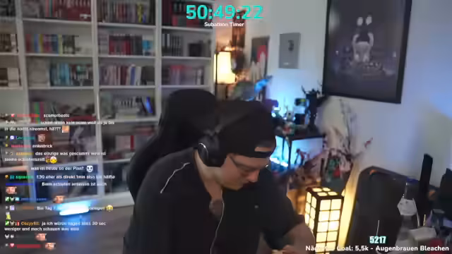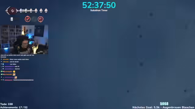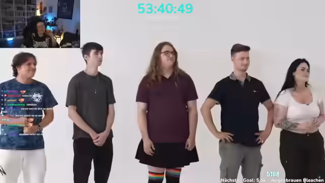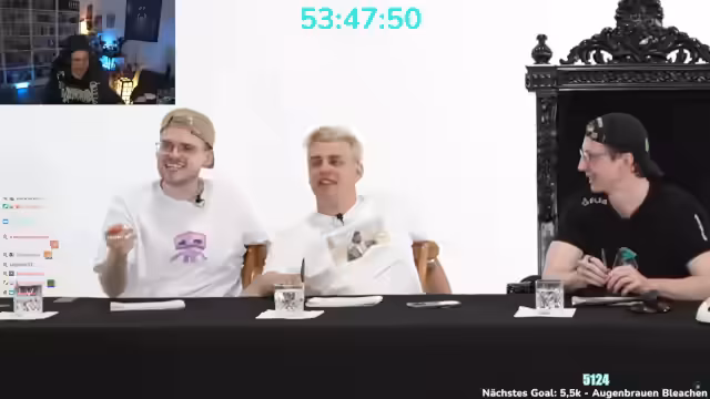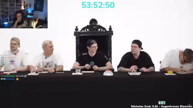 01:52:07Der Streamer feiert das Erreichen von 5.000 Subs, was als unglaubliche Menge wahrgenommen wird. Dies stellt einen neuen Rekord dar, da der bisherige Peak bei 3.500 Subs lag. Durch das Erreichen der 5.000 Subs wurde ein Tag mit Horrorspielen freigeschaltet, der direkt am nächsten Tag stattfinden wird. Als nächstes Ziel steht das Augenbrauenbleachen an. Es werden weitere Ziele für höhere Subzahlen vorgestellt, die immer extremer werden: Bei 6k ein Community-Control-Stream, bei 6,5k ein eigenes VTuber-Model, bei 7k 50.000 Schritte onstream laufen, ein K-Pop-Tanz lernen, Beine wachsen, Radern oder Sekiro durchspielen und ein Community-Tattoo stechen lassen. Der Streamer betont, dass die Ziele immer schlimmer werden und er sich keine Gedanken über das Erreichen von 10.000 Subs macht, da dies unrealistisch erscheint. Es wird angeboten, nach dem Bleachen der Augenbrauen auch noch Farbe reinzumachen.