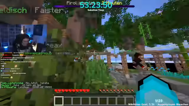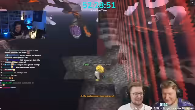 06:13:29Es wird diskutiert, ob die Pete Smith eine größere Angst sind als der Streamer in Minecraft. Fabo wird erwähnt, der noch im Nether unterwegs ist. Der Streamer betont, dass er nicht lügen darf. Es wird überlegt, was Wichtiger als Nächstes tun wird und dass Sus gerade ein Hühnchen gekehlt hat. Es wird überlegt, welcher Eisberg gemeint ist und auf Silksong verwiesen. Der Streamer erzählt von einem Bosskampf um 4 Uhr nachts und dass er die ganze Zeit geragebaitet wurde. Es wird überlegt, ob Feister Silksong weiterspielen kann und der Streamer eine Watch Party machen darf. Es wird überlegt, wie viele Tode der Streamer in Boston hatte. Es wird überlegt, was Wichtiger gerade macht und wie er sich vor einem Fall schützt. Es wird überlegt, wer neben Wichtiger auf dem Boden ist und wie viel Wasser darunter läuft. Es wird überlegt, ob Lukas ein 1v2 macht und ob er eine Chance hat. Es wird überlegt, wie Wichtiger überhaupt da hochgekommen ist und wie viele Kills er bis jetzt hat.