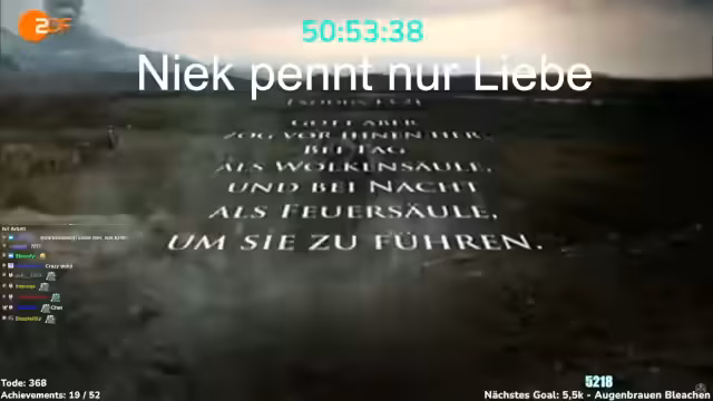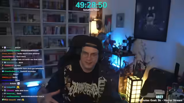 01:51:06Der Streamer reagiert auf aktuelle Entwicklungen im Chat und bestätigt, dass die Marke von 5.000 Subs im laufenden Subathon erreicht wurde. Dies löst große Freude und eine Bestätigung eines neuen, täglichen Rekordes aus. Als Belohnung für dieses Ziel kündigt der Streamer einen speziellen Horror-Day am folgenden Tag an, an dem den gesamten Tag ausschließlich Horrorspiele gespielt werden. Die Stimmung ist geprägt von Begeisterung und der Anerkennung der Community.