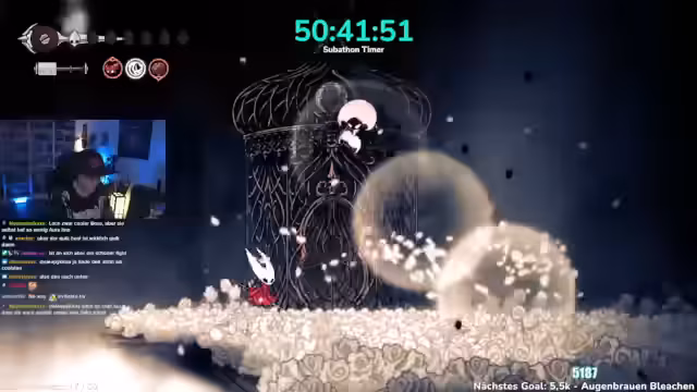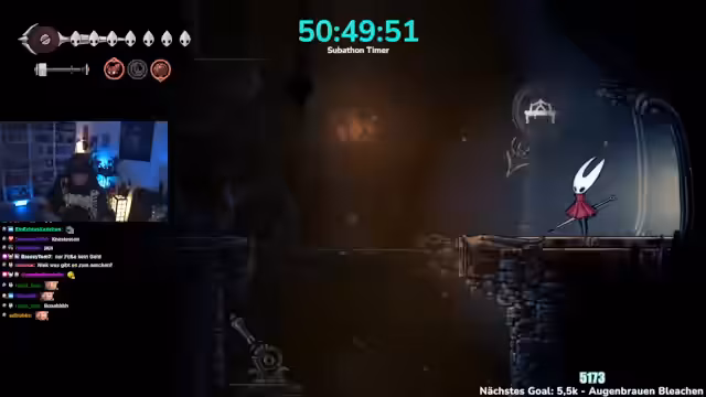 07:43:45Nachdem das Minecraft-Event beendet ist, wechselt der Stream zum Spiel "Silksong". Er beginnt an einem früheren Punkt im Spiel und erkundet die Gebiete, während er versucht, vor Spoilern durch den Chat zu warnen. Der Streamer stellt fest, dass die Spielmechaniken anspruchsvoll sind und er sich erst noch in den Kampf einarbeiten muss. Der Fokus liegt auf der Entdeckung der Spielwelt, dem Sammeln von Ressourcen und dem Kampf gegen Bossgegner.