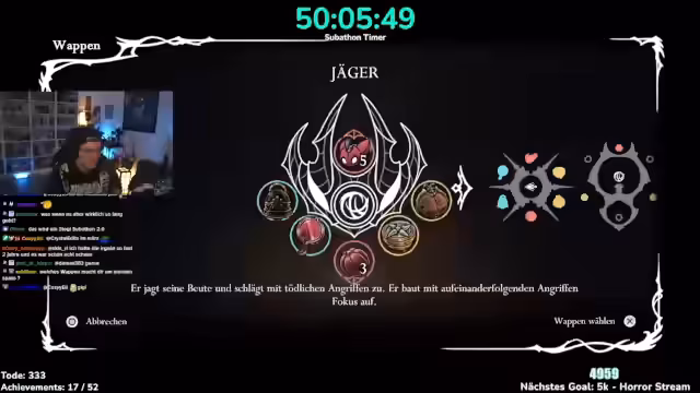 00:45:52Der Streamer gibt Ratschläge, wie man Pantheon 5 in Hollow Knight schafft. Er beschreibt einen intensiven, einwöchigen Plan mit Meditation, Sport, kalten Duschen und stundenlangem Training ohne Ablenkung. Er betont die Schwierigkeit des Bosskampfes gegen Absolute Radiance und die Notwendigkeit, trotz Rückschlägen und Verzweiflung weiterzumachen. Er rät Zuschauern, die Pantheon 5 nicht kennen, es nicht anzufangen, um ihren Selbstrespekt zu bewahren. Er erklärt, dass er keine Musik im Hintergrund abspielen wird, da das Spiel einen der schönsten OSTs hat. Er erklärt, wie man das Hornet-Badge bekommt. Er spricht über die Möglichkeit, dass der Sabaton länger dauern könnte, da der Timer immer weiter hochgeht. Er bedankt sich für den Support des Chats und betont, wie viel Spaß ihm der Sabaton macht und dass er sich auf die kommende Woche freut.