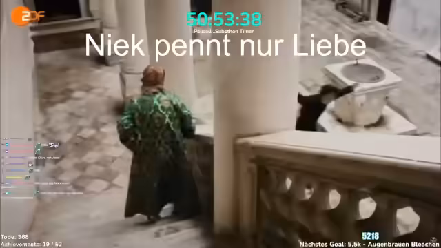 08:01:21Der Streamer kommentiert, dass das Spiel religiöse Elemente hat. Er will zu den hohen Hallen hochfahren, um zu gucken, was da abgeht. Er will den ein oder anderen Tipi holen oder mal gucken, was da so abgeht. Er will mal den ersten Blick haben, wie groß es da oben noch ist. Er benutzt den Aufzug und es startet eine Cutscene. Der Streamer kommentiert das Feld, was man kennt und findet es geil. Er kommt mit wenig Leben an und stirbt. Er fragt, ob es noch eine bessere Bank gibt. Der Streamer muss Nana lesen, da er morgen im Podcast über den ersten Band redet. Er wird heute nicht so lang machen, da die Fast-Durch-Mach-Nacht von gestern nachwirkt. Er will morgen ein bisschen früher pennen gehen, aber hofft auf einen längeren Horror-Stream morgen. Er wird morgen als erstes gucken, welche Spiele er an dem Tag spielt. Er kommentiert, dass er grau ist und überall pink ist. Er wünscht Janik alles Gute zum 18. Geburtstag. Er spielt keine Spiele, die er schon mal gespielt hat und Resi 2 ist auch kein Horror-Game. Er will gucken, was es noch für neue Horror-Spiele gibt. Outlast ist ein guter Tipp, aber er hat es auch schon gespielt. Der Streamer kriegt einen Bann für einen Spoiler. Er will die Glocke spielen. Er findet Schnellsheilen gut, aber mag auch den Schutz beim Heilen. Cypher hat er schon mal gespielt. Der Streamer mag es nicht, wenn er gespoilert wird. Er will den Boss nicht morgen machen. Er lässt die Gegner kommen. Redespoiler immer mit. Der Streamer bedankt sich für den Support. Er fragt, was Henkel macht.