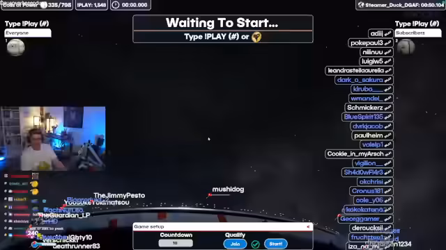 04:48:54Die Runde wird gestartet, doch es kommt zu technischen Verwirrungen und Chatter interagieren auf unvorhergesehene Weise mit dem Spiel. Gleichzeitig wird ein User namens Nusskeks von einem Mod vorzeitig aus einem Timeout geholt, was beim Streamer für Unmut sorgt. Er beobachtet die Mod-Aktivitäten im Dashboard und kündigt an, dieses Verhalten in zukünftigen Mod-Gesprächen ansprechen zu wollen.