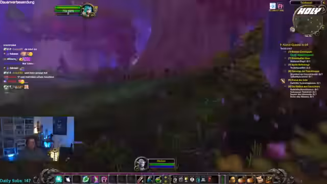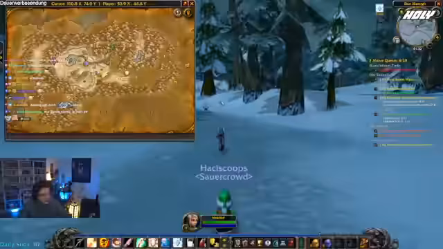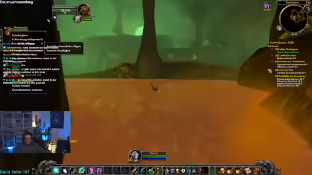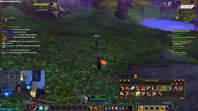 03:00:50Der Streamer spielte World of Warcraft mit seinem Charakter Niek5, der sich im Levelaufstieg und beim Sammeln von Inventarplätzen (Taschen) massiv behindert fühlte. Seine Frustration war groß, insbesondere als Chatmitglieder ihn störten, indem sie ihm Monsterspawn verursachten oder ihm unerwünschte Hilfe anboten. Er drohte sogar mit einem Quit, wenn ihm nicht schnell Inventarplatz zur Verfügung gestellt würde.
