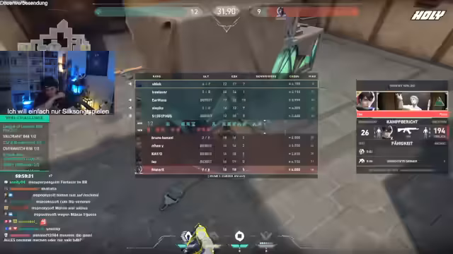 02:08:03Das Team experimentiert mit verschiedenen Agenten, um eine funktionierende Aufstellung zu finden. Währenddessen steigt der emotionale Druck, da die Gegner stark sind und die eigenen Leistungen schwanken. Es kommt zu Frustrationen, insbesondere über mangelnde Kommunikation und Fehlentscheidungen. Der Streamer äußert den Wunsch, lieber andere Spiele wie Silksong zu spielen, fühlt sich aber von den Mitspielern in das Valorant-Spiel gedrängt.