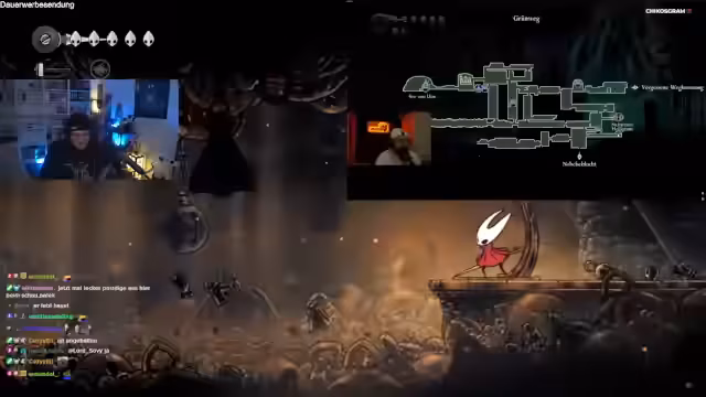 05:45:14Nach einem schwierigen Start, bei dem der Streamer beinahe gegen eine Firma fährt, fokussiert er sich auf sein Steel-Soul-Run in Silksong. Nachdem er einenShortcut geöffnet hat, beginnt er aktiv nach wichtigen Ressourcen wie Maskenteilen zu suchen, um seine Überlebenschancen zu erhöhen. Er plant, den Splinter-Boss zu umgehen und stattdessen zuerst die 'Widow'-Challenge zu meistern, die er als die größte Hürde des aktuellen Versuchs ansieht. Seine Strategie ist es, zuerst alle wichtigen Items zu sammeln, um den Run so sicher wie möglich zu gestalten, da es sich um einen Marathon handelt, bei dem Sicherheit Priorität hat.