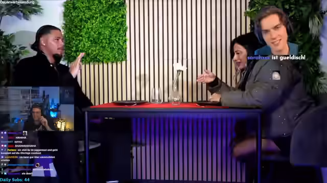 00:36:25Nach einer Klärung des neuen Ziels in League of Legends startet der Streamer mit einem neuen Format: dem Blind Date Dinner. Dieses Format analysiert Videoausschnitte von Blind-Dates und kommentiert die Gespräche und Verhaltensweisen der Teilnehmenden. Der erste Fokus liegt auf Sarah, einer 36-jährigen Streamerin und Influencerin. Das Gespräch zwischen Sarah und einem der männlichen Datenden, Murat, eskaliert schnell und wird von dem Streamer und dem Chat als unangemessen und respektlos analysiert, was zu einer sehr negativen Bewertung des Dates führt.
