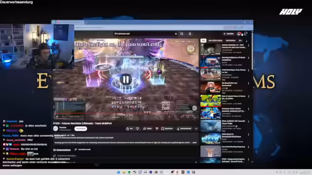 04:44:51Der Streamer teilt seine persönlichen Erfahrungen mit dem Gameplay und der Story von Final Fantasy XIV, insbesondere mit Fokus auf Dragoon und die aktuelle Story-Quest. Er erklärt seine Strategie im Kampf gegen bestimmte Gegner und gibt Einblicke in seine Spielphilosophie, einschließlich des Skippens von Story-Inhalten zu Gunsten von schnellerem Fortschritt. Die Session endet mit einer Einladung für die Community, am Sonntag erneut beizutreffen.