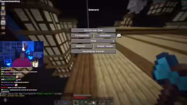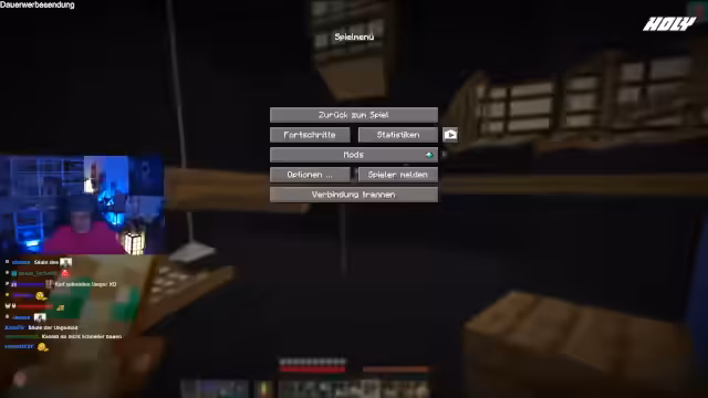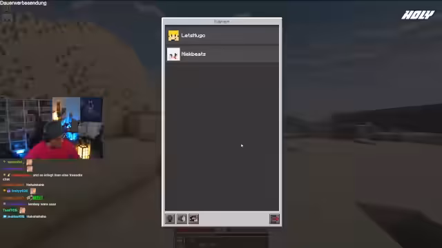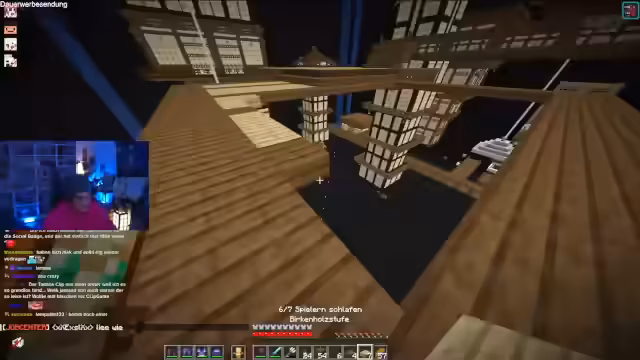 05:44:54Ein gravierender Baufehler führt zu einem kurzschlussartigen Ausbruch von Niek. Er bemerkt, dass er fälschlicherweise nur eine statt der benötigten zwei 'Halbküchen' platziert hat und rastet verbal gegenüber einem Viewern namens 'Tempo Tim' aus. Der Stream beschreibt das plötzige Erlöschen der Freude an Minecraft: 'Es ergibt keinen Sinn mehr für mich, Chat.' Konflikte mit anderen Teilnehmern wie 'Pete', der Leder zurückverlangt, und Tamina, deren Projekt wegen Säulen-Probleme scheinbar behindert wird, überschlagen sich.